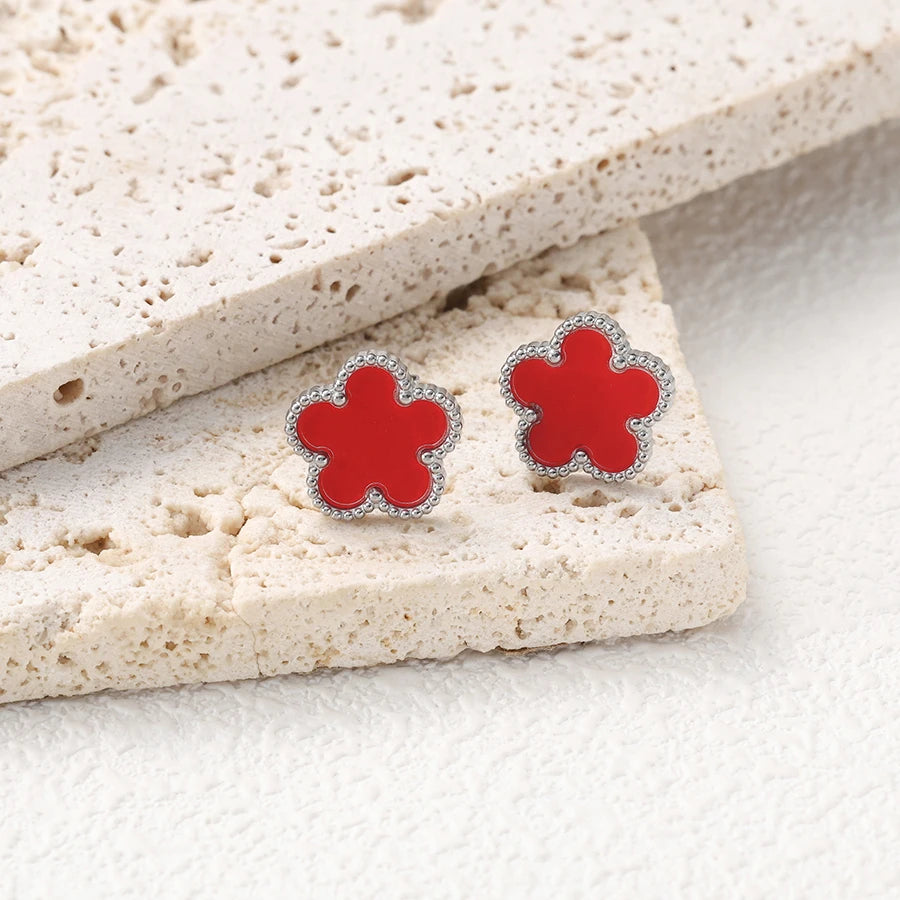 Boucles d'oreilles argentées à fleurs rouges multiples