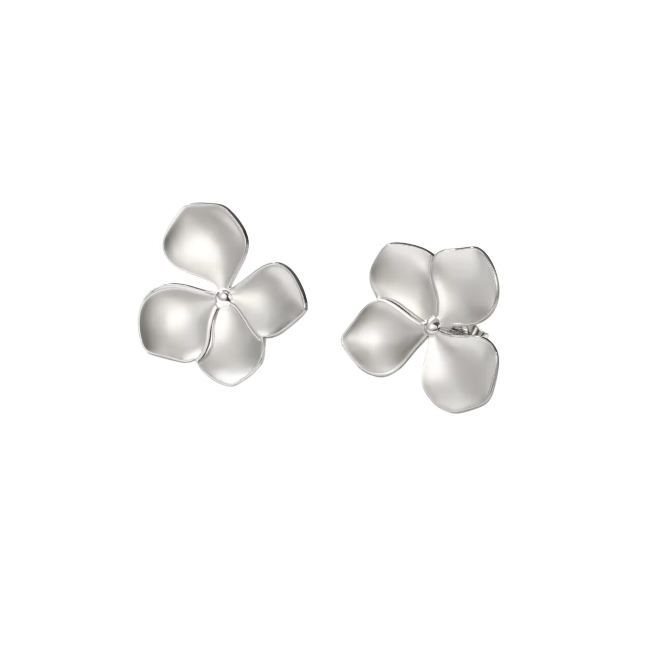Boucles d'oreilles fleurs argentées à pétales lisses