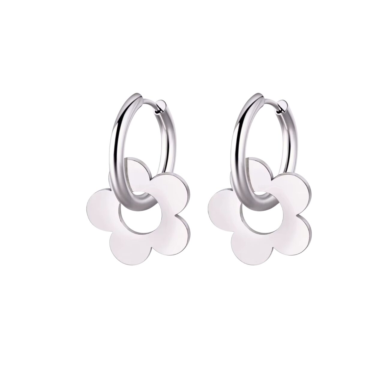 Boucles d'oreilles fleurs créoles arrondies argentées