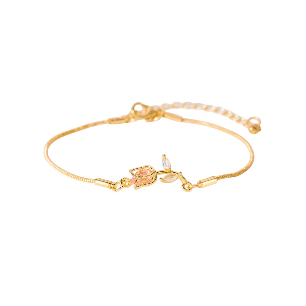 N'oublions pas qu'il s'agit aussi d'une excellente idée de cadeau pour vos proches. Que ce soit pour une amie, une compagne, une fille ou même pendant les fêtes de Noël, ce bracelet enchantera toutes les femmes. Sa teinte dorée, associée à une touche de rose, crée un contraste harmonieux qui plaira à coup sûr. Avec des matériaux de qualité comme le cuivre et le cristal de zircon, vous pouvez être sereine : ce bracelet est non seulement joli, mais aussi durable. Laissez-vous séduire par le Bracelet avec pendentif tulipe doré et rose et faites-vous plaisir ou faites plaisir à quelqu'un que vous aimez !