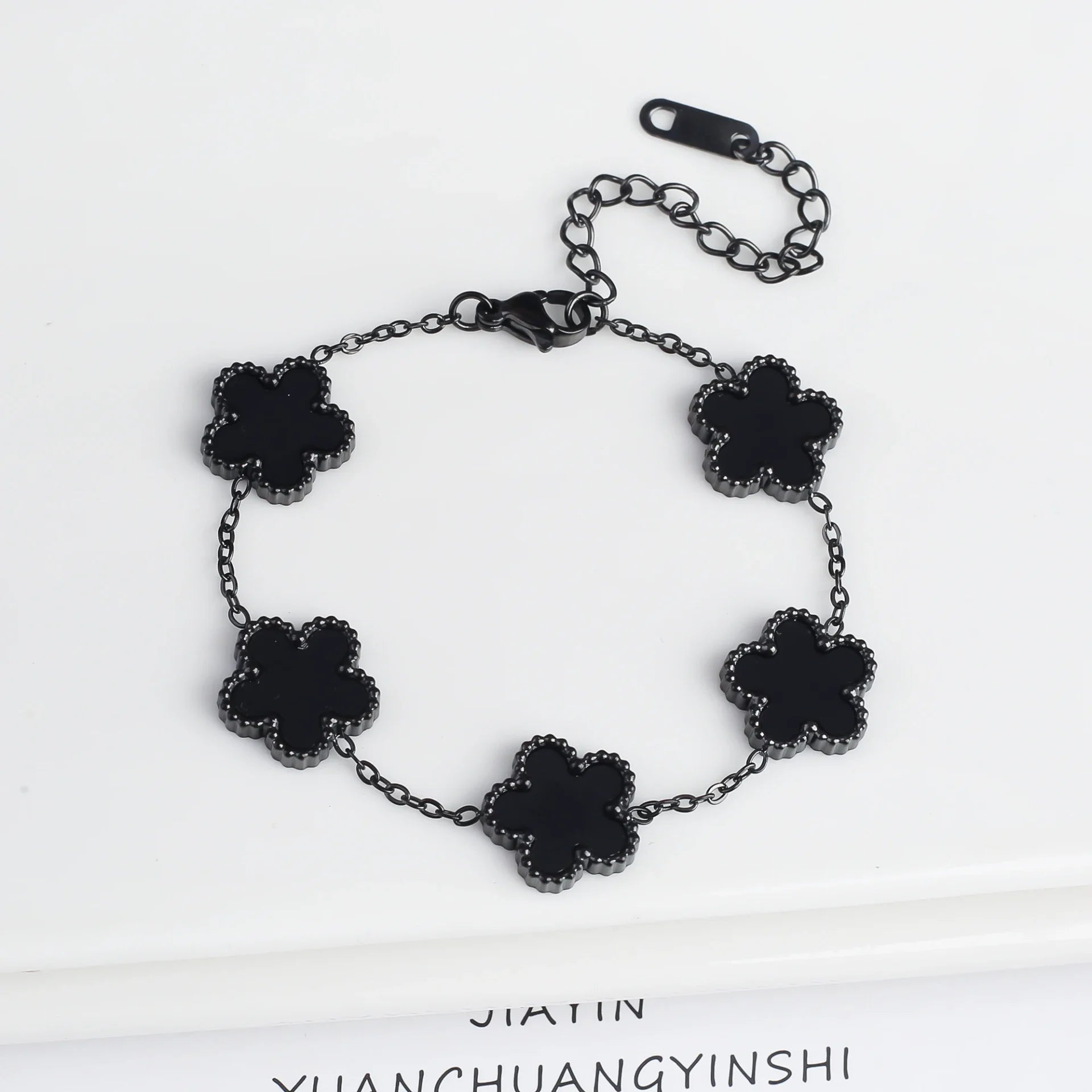 Le Bracelet fleurs noir laqué se démarque aussi par son confort et sa simplicité d'utilisation. Avec son fermoir à griffes en forme de homard, l'enfilage est un véritable jeu d’enfant. Sa chaîne serpent souple s’ajuste à toutes les tailles de poignet, garantissant un maintien idéal. C'est le bracelet parfait pour celles qui aiment les accessoires à la fois tendances et indémodables. En le portant, vous attirerez à coup sûr les regards admiratifs et récolterez les compliments. La fusion de son style classique et de sa modernité fait de lui un indispensable dans toute boîte à bijoux. Laissez-vous séduire par ce bijou raffiné qui deviendra vite votre allié au quotidien !