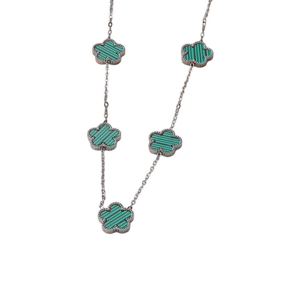 Découvrez le collier argenté à fleurs vertes multiples, un bijou élégant et raffiné qui saura apporter une touche de fraîcheur à votre tenue. Idéal pour les soirées entre amis ou les événements festifs, ce magnifique ensemble de bijoux se compose d'un collier, de boucles d'oreilles et d'un bracelet. Le design délicat des fleurs vertes se marie parfaitement avec le métal argenté, créant un look chic et intemporel. Porter ce collier argenté à fleurs vertes multiples, c'est choisir de se démarquer sans jamais en faire trop !