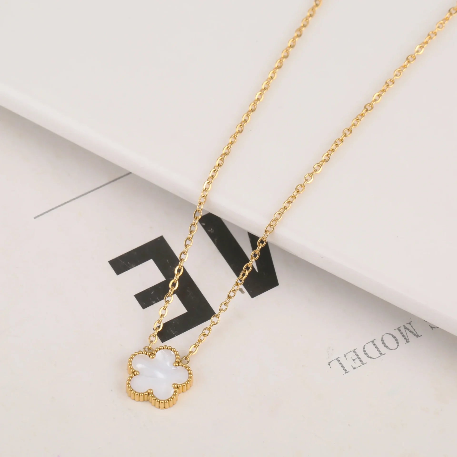 Découvrez notre collier fleur nacré blanc et or, un accessoire qui rehaussera instantanément votre style tout en ajoutant une touche d'élégance à votre look. Ce bijou délicat, en forme de trèfle à quatre feuilles, présente des pétales nacrés blancs qui capturent la lumière avec grâce. Non seulement il est magnifique, mais il symbolise également la chance, un petit clin d'œil parfait pour attirer les bonnes ondes. Que ce soit pour une soirée chic, un mariage romantique ou même une sortie décontractée entre amis, ce collier s'adapte à toutes les occasions et sera le point focal de votre tenue.